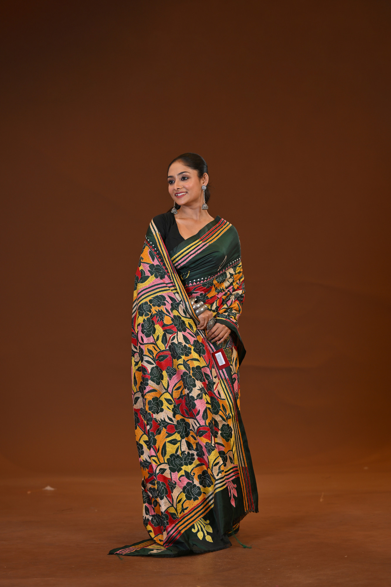 Zari : A blended silk Kantha saree is a traditional Indian saree crafted from a mix of silk and other fibers, adorned with Kantha embroidery—a hand-stitched technique originating from Bengal. These sarees are known for their lightweight drape, smooth texture, and intricate, often storytelling motifs stitched in fine running stitches. The blend of silk gives it a soft sheen and elegance, making it a perfect choice for both festive and casual occasions.