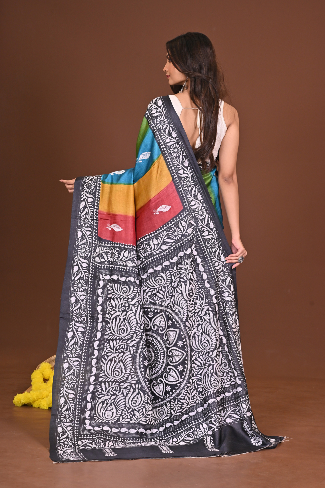 Zari : A Gachi Silk Kantha Saree is a luxurious handwoven saree made from Gachi silk, known for its smooth texture and natural sheen. It features exquisite Kantha embroidery, a traditional Bengali hand-stitching technique that adds intricate patterns and storytelling motifs. Elegant and artisanal, this saree showcases fine craftsmanship, making it ideal for cultural events, festivities, and special occasions.