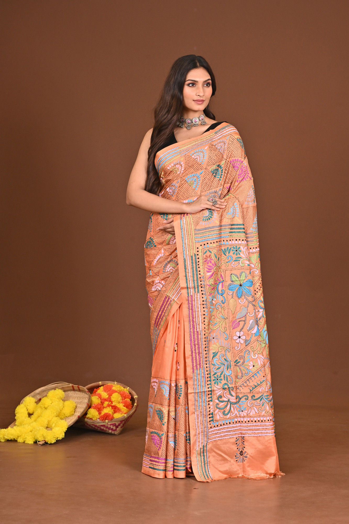 JAGATJANANI BLENDED SILK KANTHA SAREE