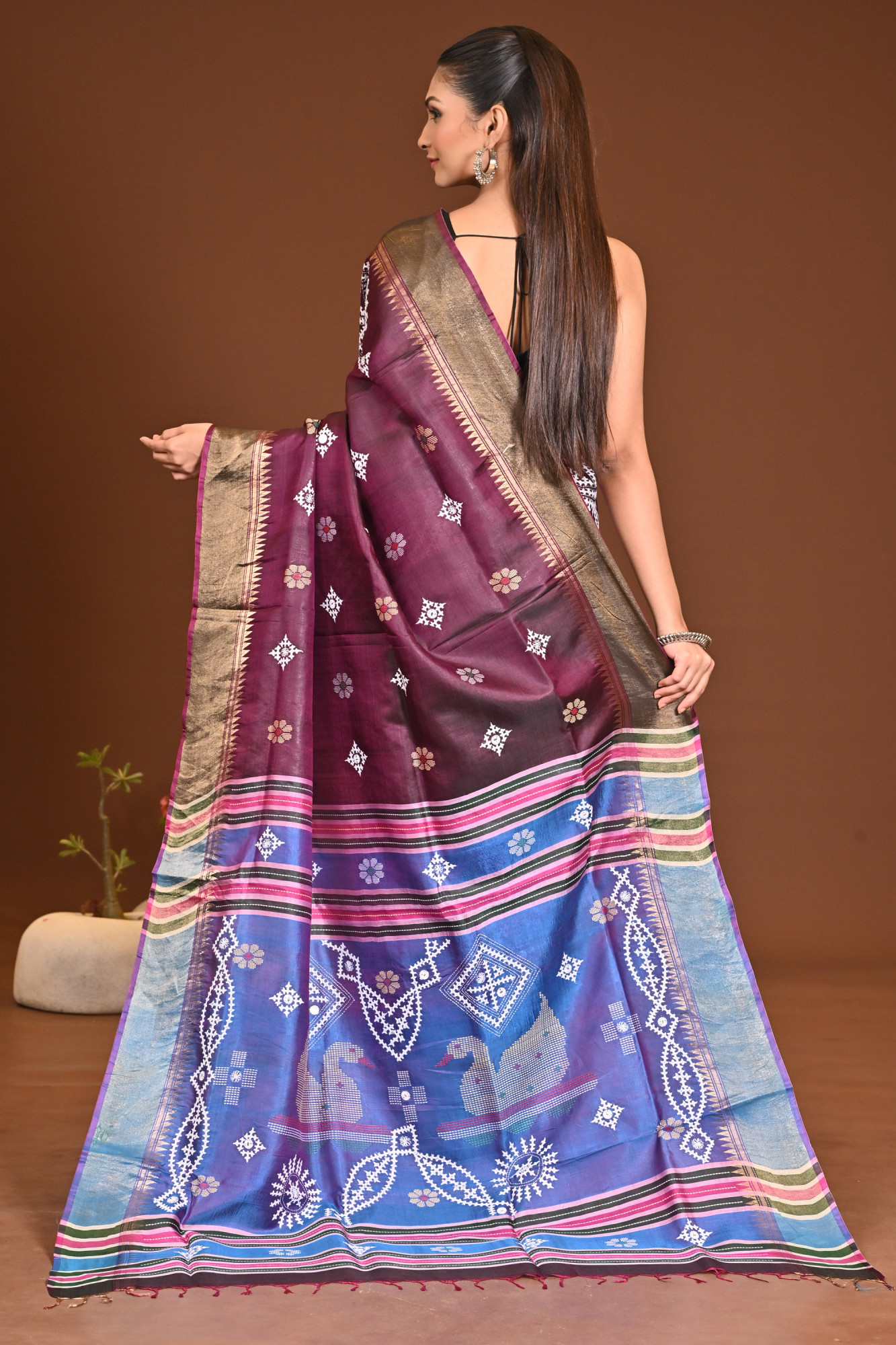Zari : The Katan Kalakhetra saree is a traditional Indian garment known for its intricate handwoven patterns and luxurious silk fabric. Originating from the Kalakhetra region, these sarees are celebrated for their rich textures and detailed craftsmanship, making them a timeless choice for formal and festive occasions.