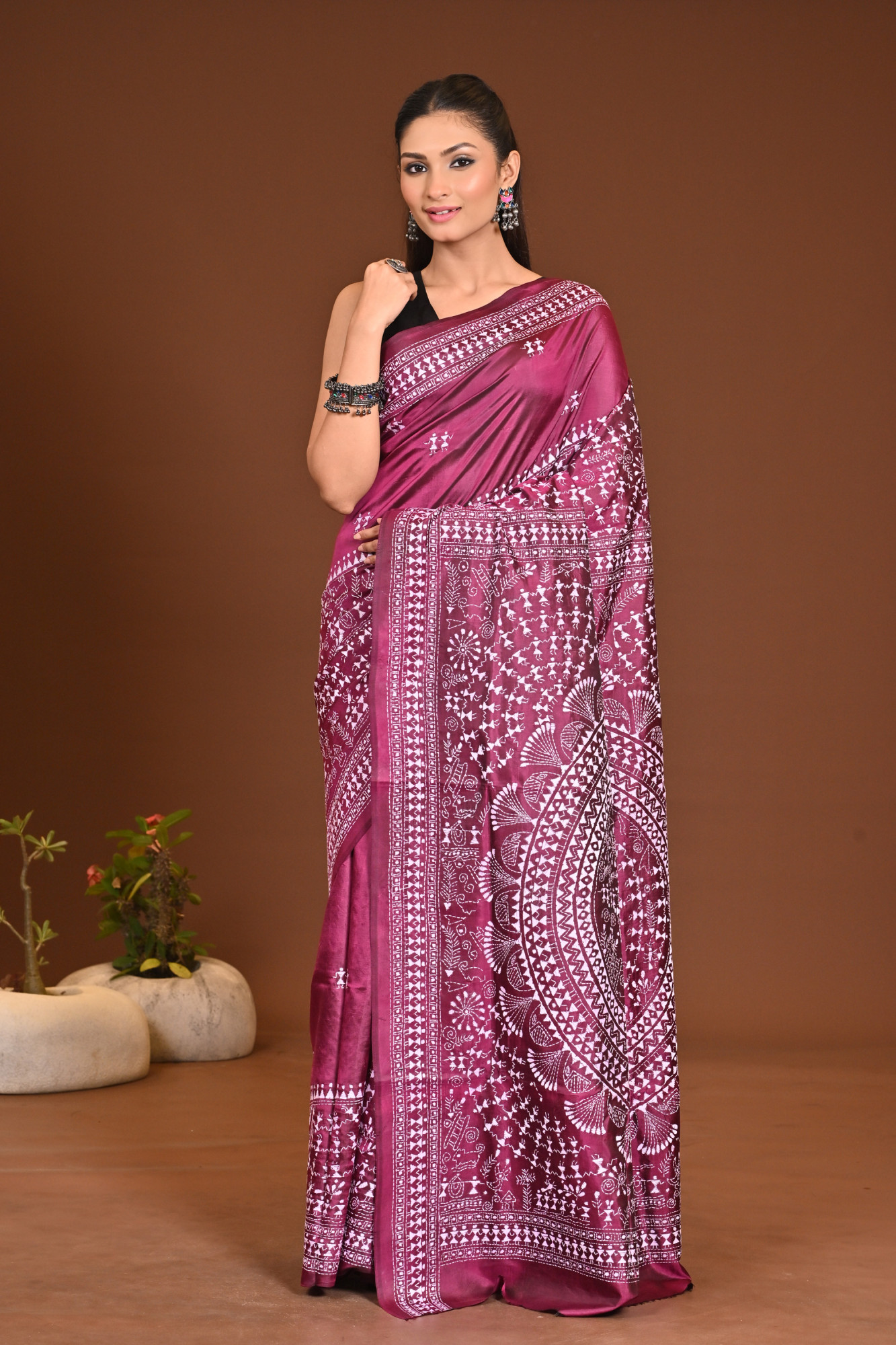 Zari : A pure silk Kantha saree is a luxurious handwoven saree made entirely from high-quality silk, featuring the traditional Kantha embroidery from Bengal. Known for its rich texture and natural sheen, the saree is adorned with intricate, hand-stitched patterns—often floral, folk, or narrative designs—created using fine running stitches. Elegant and timeless, it’s a perfect blend of heritage craftsmanship and sophistication, ideal for special occasions.
