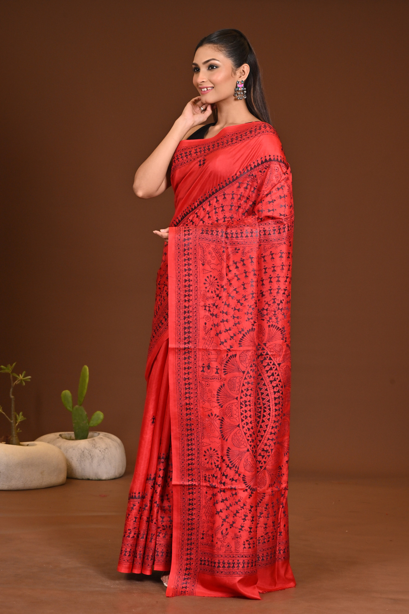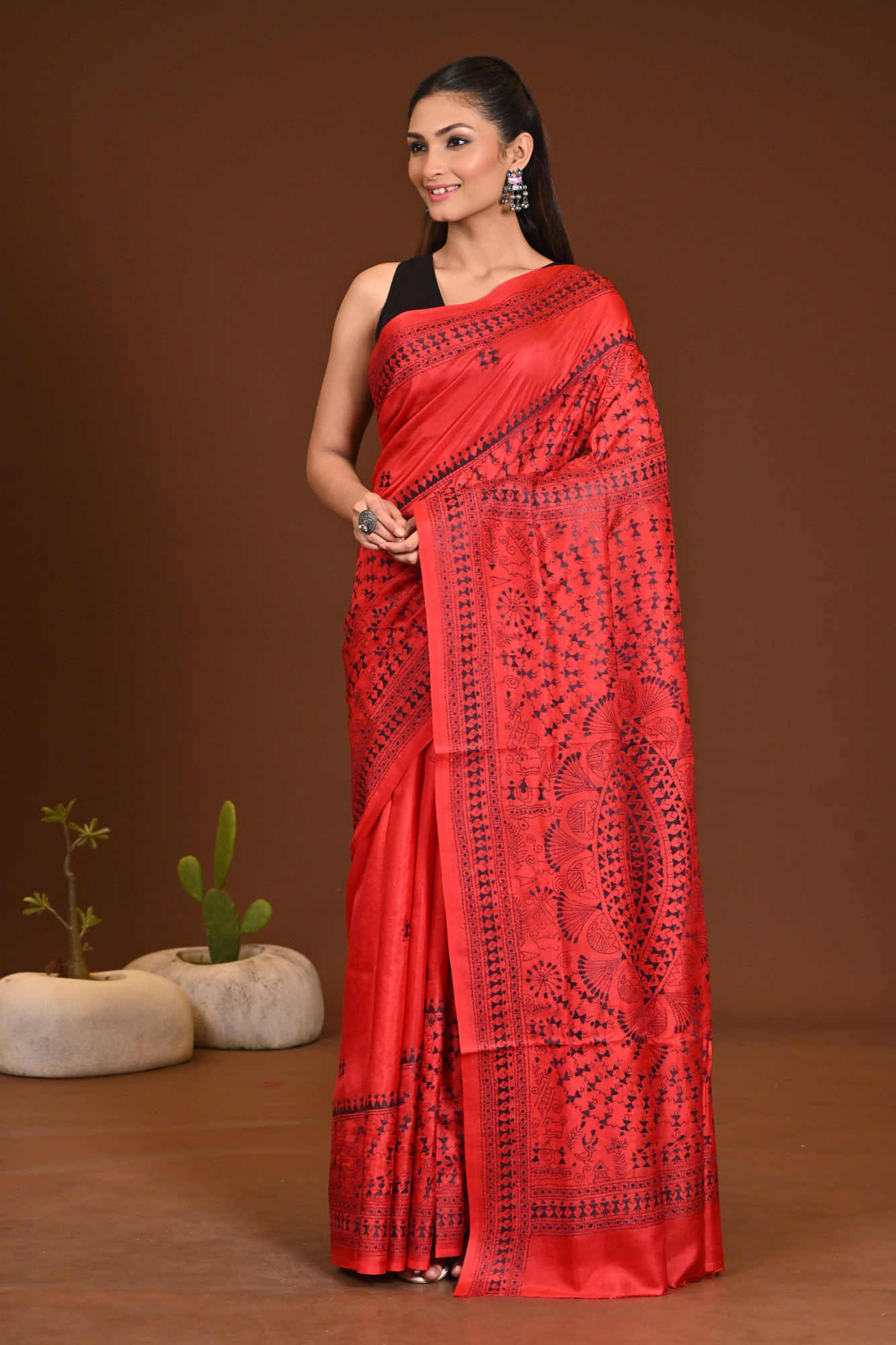 Zari : A pure silk Kantha saree is a luxurious handwoven saree made entirely from high-quality silk, featuring the traditional Kantha embroidery from Bengal. Known for its rich texture and natural sheen, the saree is adorned with intricate, hand-stitched patterns—often floral, folk, or narrative designs—created using fine running stitches. Elegant and timeless, it’s a perfect blend of heritage craftsmanship and sophistication, ideal for special occasions.