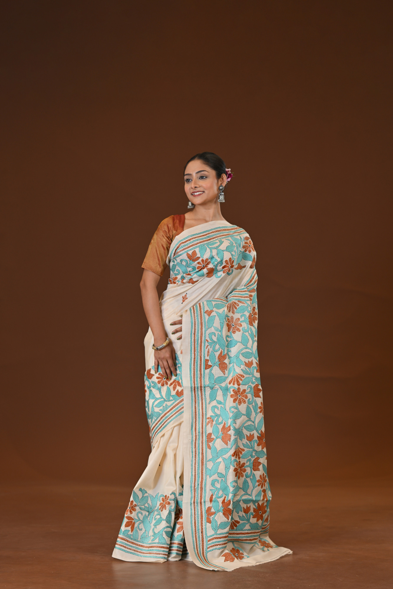 Pure Silk Kantha Stitch Saree