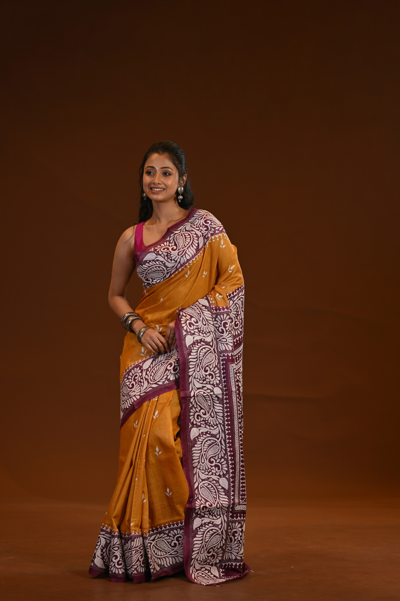 Zari : A pure silk Kantha saree is a luxurious handwoven saree made entirely from high-quality silk, featuring the traditional Kantha embroidery from Bengal. Known for its rich texture and natural sheen, the saree is adorned with intricate, hand-stitched patterns—often floral, folk, or narrative designs—created using fine running stitches. Elegant and timeless, it’s a perfect blend of heritage craftsmanship and sophistication, ideal for special occasions.