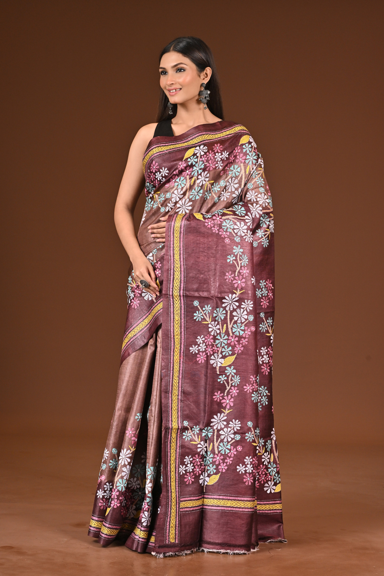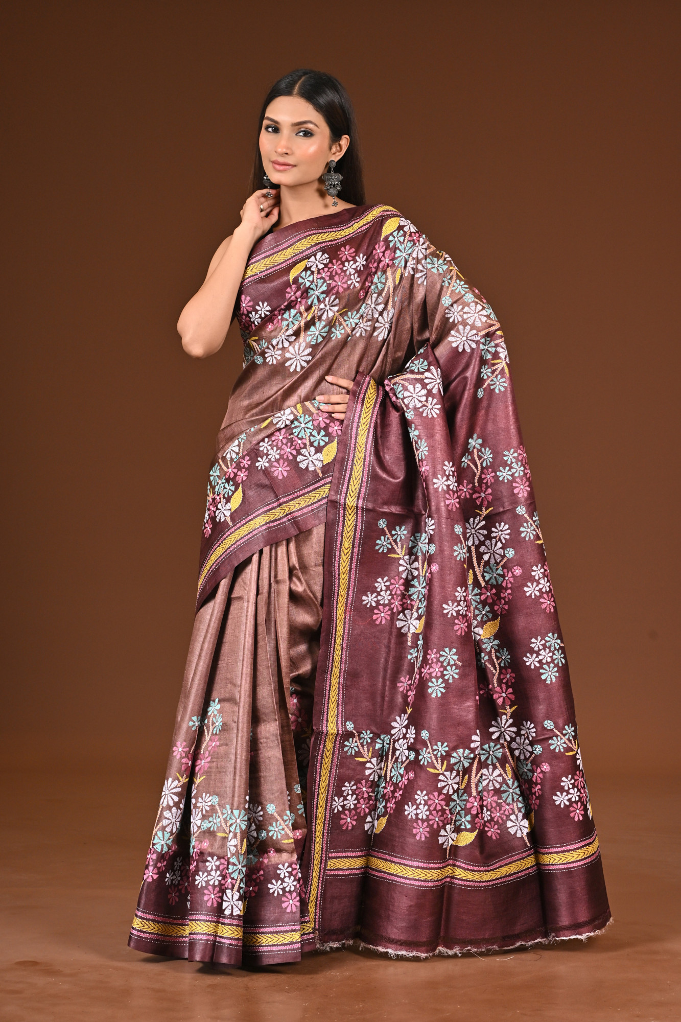 PURE SILK KANTHA SAREE