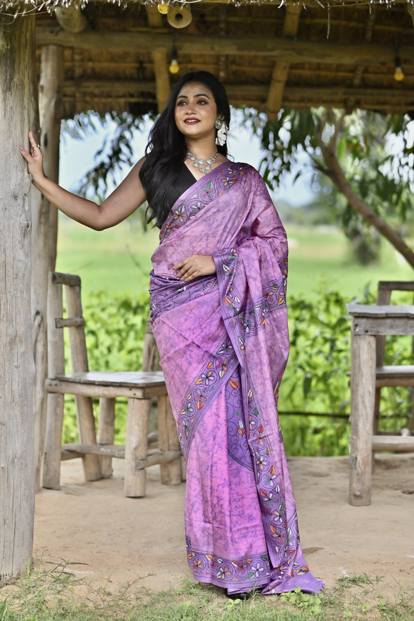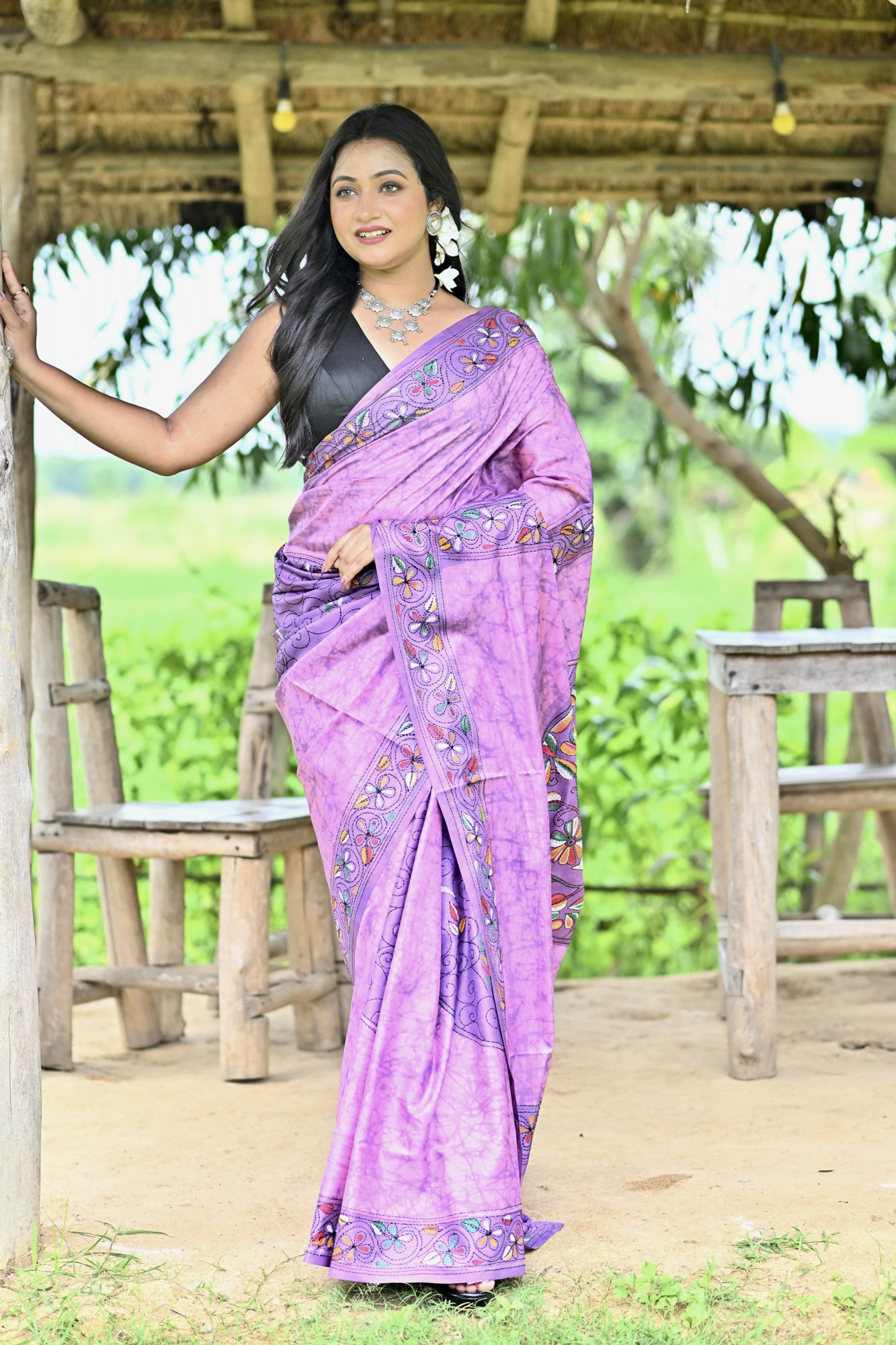 Zari : A blended silk Kantha saree is a traditional Indian saree crafted from a mix of silk and other fibers, adorned with Kantha embroidery—a hand-stitched technique originating from Bengal. These sarees are known for their lightweight drape, smooth texture, and intricate, often storytelling motifs stitched in fine running stitches. The blend of silk gives it a soft sheen and elegance, making it a perfect choice for both festive and casual occasions.