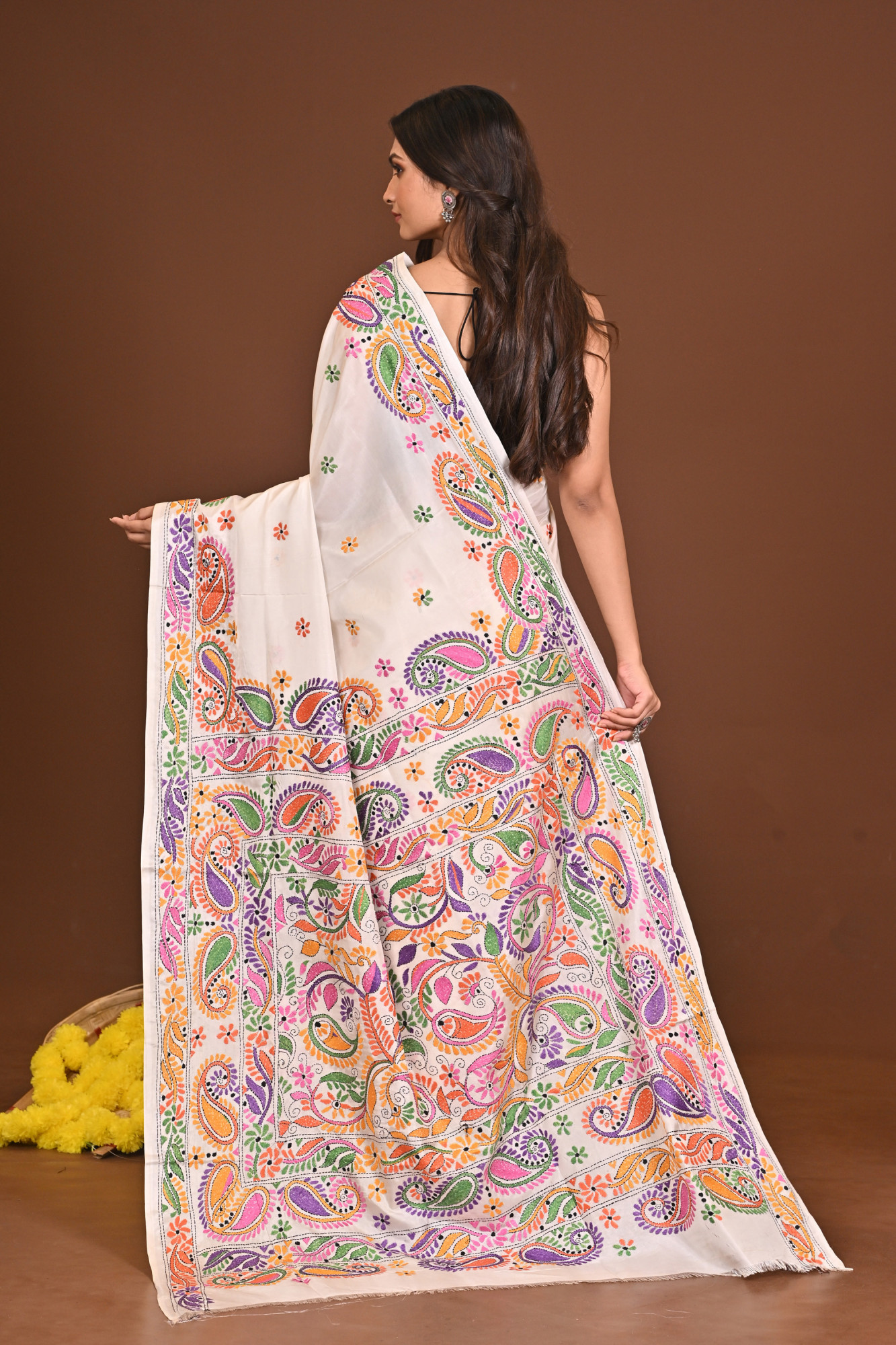 SHWETAMBARI BLENDED SILK KANTHA SAREE