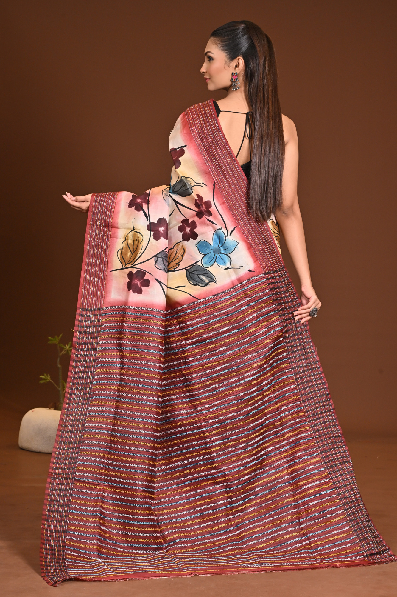 Zari : A Silk Jalchuri Hand Print Kantha Saree is a luxurious blend of rich silk fabric, intricate Jalchuri patterns, and traditional hand-printed Kantha artwork. Lightweight yet elegant, it showcases fine craftsmanship with detailed stitches and artistic motifs that reflect cultural heritage. Perfect for festive occasions and special events, it offers a sophisticated drape with a beautifully handcrafted finish.