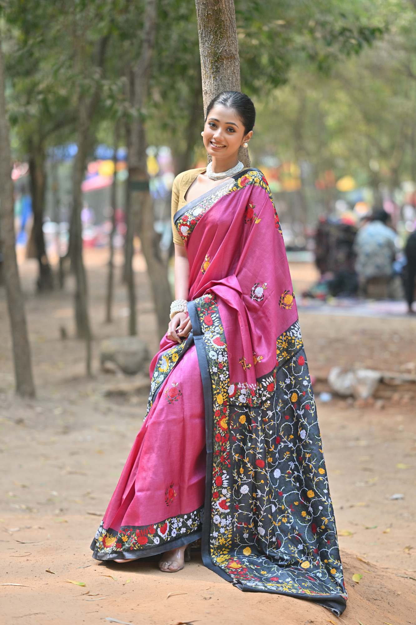 Tussar Silk Kantha Stitch Saree